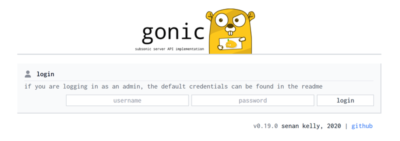 gonic のデフォルトログインはユーザー名がadmin、パスワードもadminだ。
