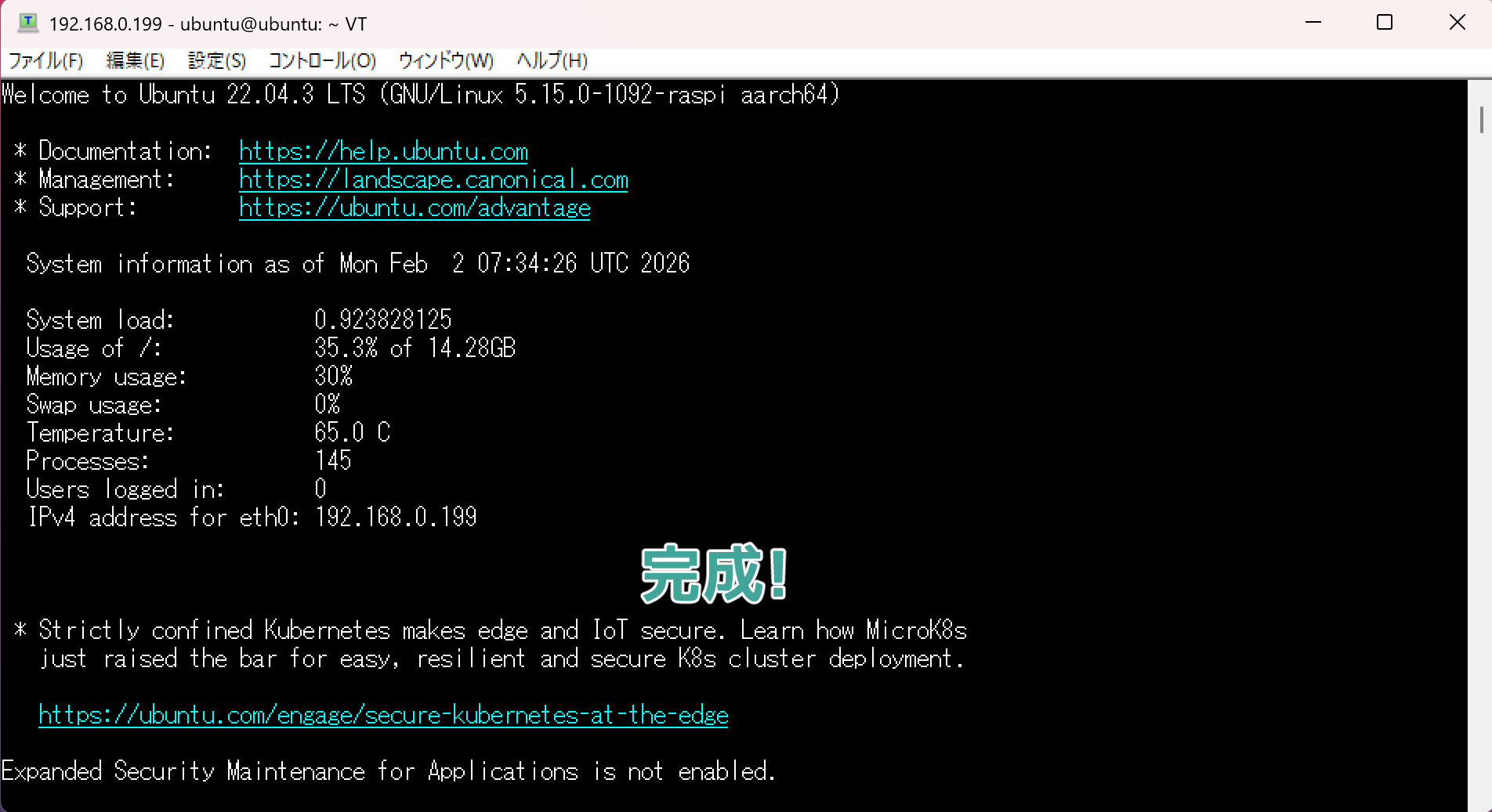 設定したのはUbuntuサーバーのバージョン22.04.3だ。